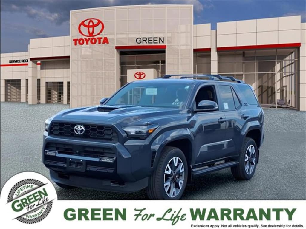 Green for Life! Lifetime Protection applies to all new vehicles and select pre-owned vehicles that are 8 model years old or newer with 80,000 miles or less. Pre-Owned vehicles must pass our Lifetime Powertrain Protection certification program, pass a similar inspection or have a satisfactory Carfax/Autocheck profile. (Not available on any commercially used vehicles whether New or Used.) Some models excluded. See store for details. Dealership reserves the right to exclude any vehicle at any time. Must follow maintenance rules set forth by Green Toyota.